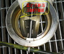 1號潤滑油過濾器出口第1個出口逆止閥,發現逆止閥半邊密封條脫落,造成供油管堵塞。