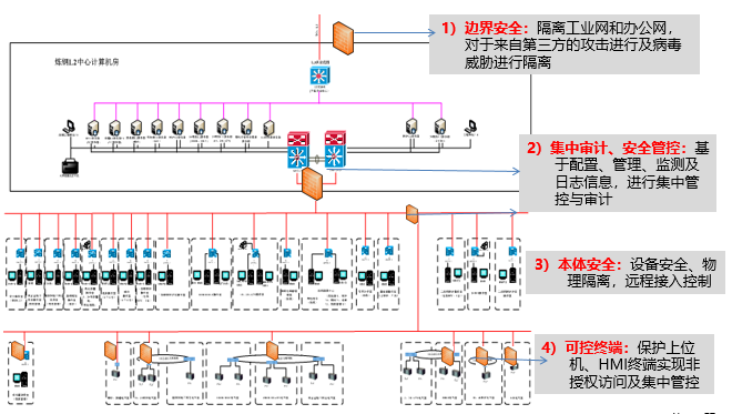 網絡體系是實現連接鋼鐵行業工業系統、全價值鏈、全產業鏈的基礎,包括網絡互連、標識解析、應用支撐三大體系。數據包括“采集交換-集成處理-建模分析-決策與控制”,形成優化閉環,驅動工業智能化。安全是鋼鐵行業工業互聯網各個領域和環境的安全保障,包括設備安全、控制安全、網絡安全、應用安全和數據安全等。為加速提升工業互聯網的應用質量與效果,為我國的經濟結構調整、動能轉換貢獻力量,全面推進“中國制造2025”和“互聯網+”行動計劃,有必要圍繞國家網絡安全法和網絡安全等級保護制度加強對鋼鐵行業工業互聯網信息安全領域解決方案的研究。